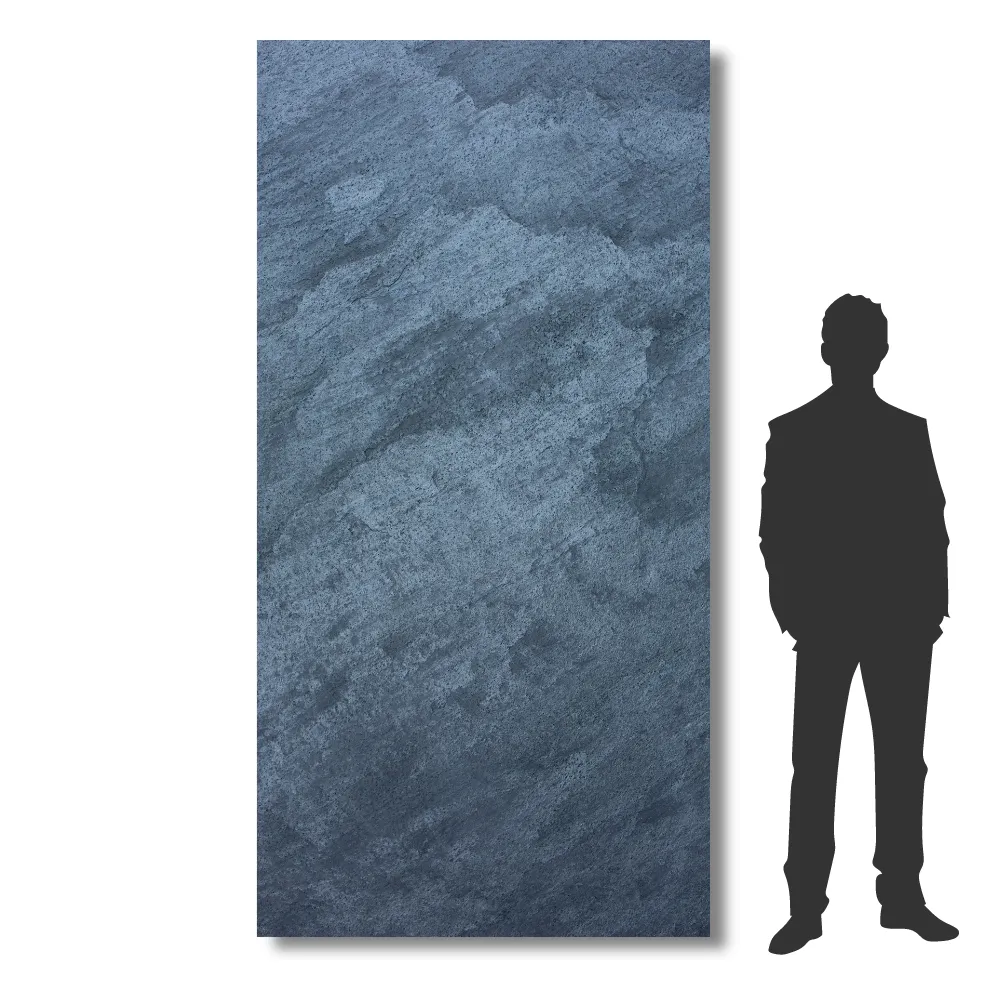 Fornir Kamienny Silver Grey XXL to nowoczesna okładzina, która zachwyca szarą kolorystyką o metalicznym połysku i delikatnych niuansach srebra. Jej łupane wykończenie nadaje powierzchni subtelną chropowatość, która oddaje autentyczny charakter naturalnego kamienia.