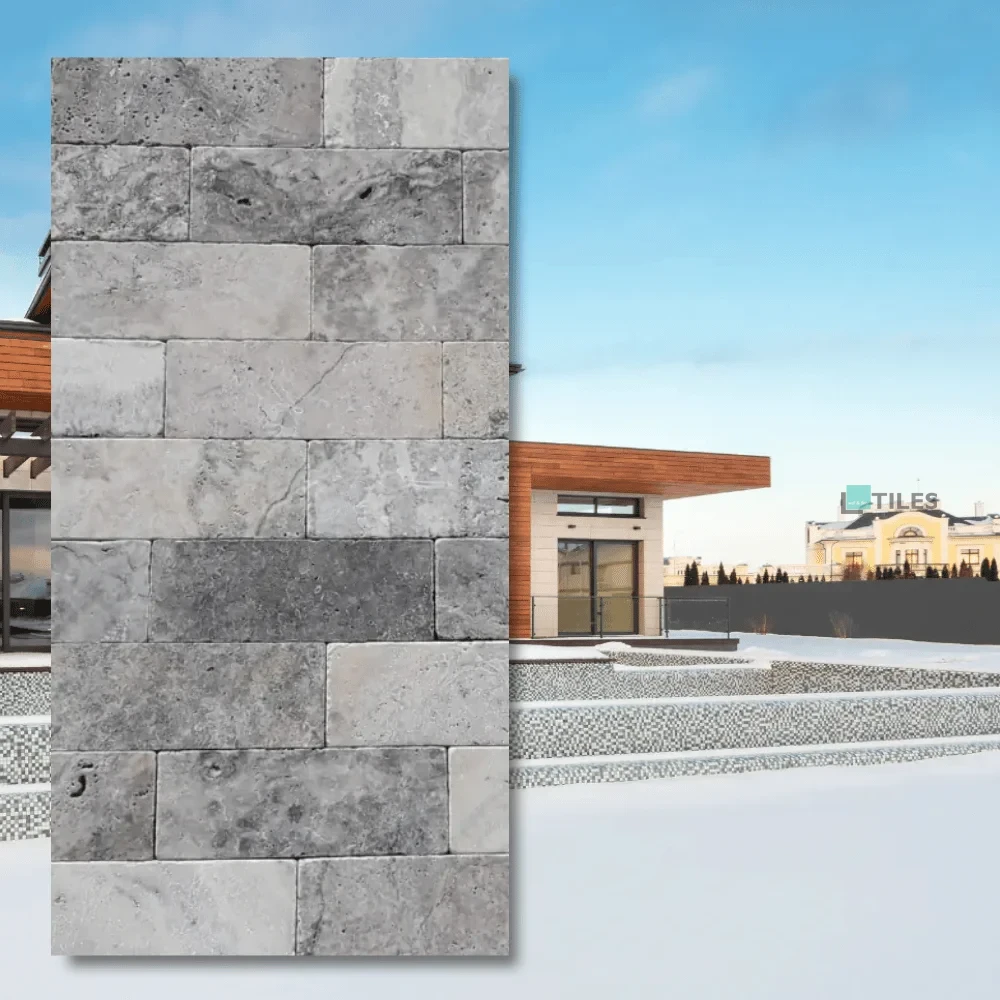 PŁYTKI KAMIENNE 7,5x15 - TRAWERTYN ASH / ARGENT SILVER