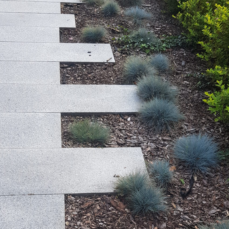 Dzięki płomieniowanej powierzchni, płyta drogowa Bianco Sardo G602 charakteryzuje się nie tylko estetyką, ale także wyjątkową odpornością na warunki atmosferyczne i obciążenia mechaniczne. Doskonale sprawdza się jako nawierzchnia drogowa, chodnikowa czy tarasowa.