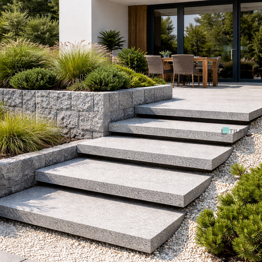 Płyty podestowe schodowe granitowe 100x100x8 cm to premium rozwiązanie dla inwestorów, architektów i wykonawców poszukujących trwałego materiału do budowy efektownych schodów zewnętrznych. Dzięki dużemu formatowi oraz odpowiedniej grubości 8 cm, płyta doskonale sprawdza się jako element stopni montowanych w nowoczesnych realizacjach, w szczególności jako schody lewitujące.