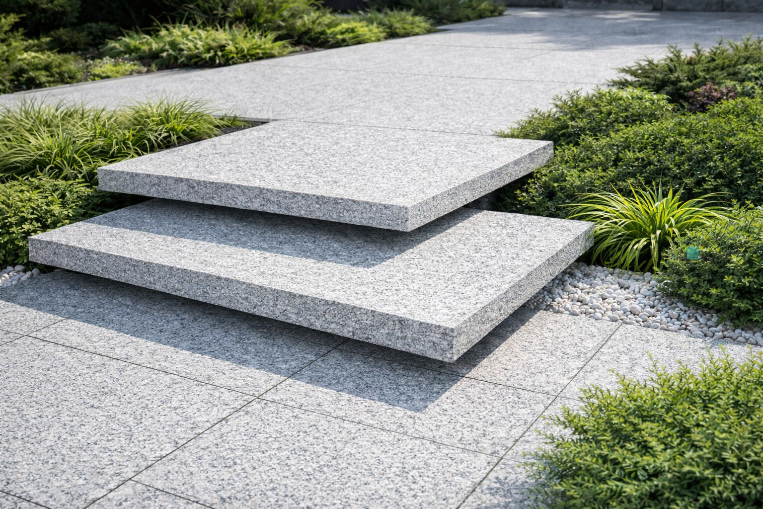 Naturalny granit to materiał ceniony za swoją wyjątkową wytrzymałość, niską nasiąkliwość oraz odporność na ścieranie, mróz i zmienne warunki pogodowe. Zastosowana powierzchnia płomieniowana zwiększa bezpieczeństwo użytkowania, ponieważ nadaje płycie właściwości antypoślizgowe. Dodatkowo płomieniowane krawędzie podkreślają nowoczesny charakter produktu i zapewniają spójne, estetyczne wykończenie.