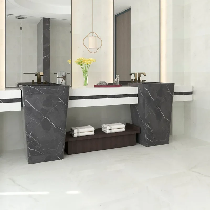 - Materiał: naturalny marmur Mugla White – znany ze swojej jasnej kolorystyki i subtelnego użylenia.
