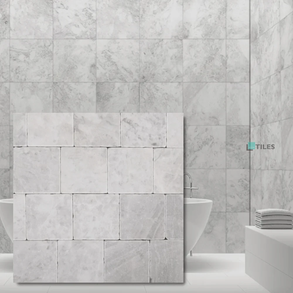Płytka marmurowa Royal White Bębnowana 20,3x20,3x1 cm StoneTiles