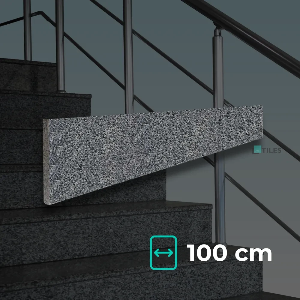Granitowa podstopnica w głębokim odcieniu ciemnej szarości (Dark Grey) z eleganckim polerowanym wykończeniem. Gładka, lśniąca powierzchnia idealnie sprawdzi się wewnątrz budynków – na schodach i w przestrzeniach użytkowych.