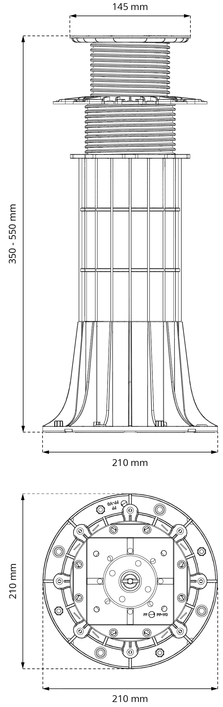 Regulowany wspornik tarasowy Max 350-550 mm