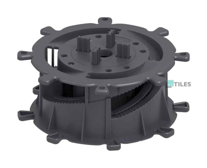 Wsporniki regulowane do tarasów podniesionych z serii SPIRAL stanowią innowacyjne rozwiązanie dla projektów tarasów wentylowanych. Dzięki precyzyjnej regulacji wysokości w zakresie od 10 do 210 mm, te wsporniki charakteryzują się unikalną konstrukcją schodkową, umożliwiającą regulację co 1 mm. Ta zaawansowana konstrukcja nie tylko zapewnia precyzję regulacji, ale także gwarantuje wyjątkową wytrzymałość na obciążenia.