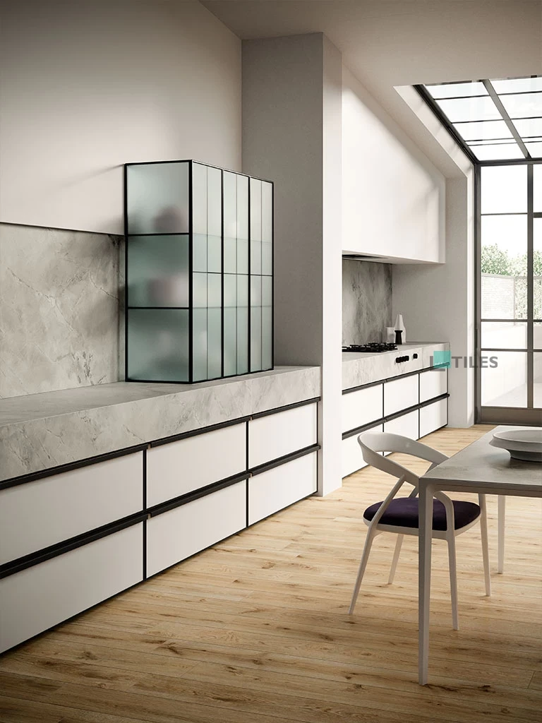 - Wielkoformatowa ceramika tzw. spieki kwarcowe to wyjątkowy rodzaj płytek ceramicznych, które z powodzeniem możemy stosować wewnątrz, jak i na zewnątrz budynku. Dzięki odpowiedniej mieszance kamienia, glinek i innych składników są materiałem nienasiąkliwym i bardzo wytrzymałym. Technologia pozwala na doskonałe odzwierciedlenie popularnych kamieni naturalnych takich jak Carrara, Statuario, Calacatta - dzięki czemu możemy stosować je w miejscach wrażliwych dla oryginalnych kamieni takich jak blaty kuchenne, stoły, czy posadzki.