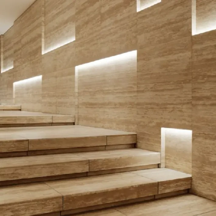 Oferowana przez nas kolekcja trawertynów ciętych w żyłki tworzy najbardziej efektowne powierzchnie we wnętrzach domowych. Co sprawia, że żyły przecinają się tak pięknie, jest niepowtarzalność wzorów na każdej płytce? Vein-Cut występuje, gdy blok kamienia jest cięty w tym samym kierunku, co naturalne użylenie kamienia, w wyniku czego płytka ma wyraźne równoległe żyły. Różnice pomiędzy poszczególnymi płytkami, ich podobieństwo do drewna oraz jasność szczotkowanego kamienia sprawiają, że ten krój jest jednym z najbardziej poszukiwanych na rynku.
