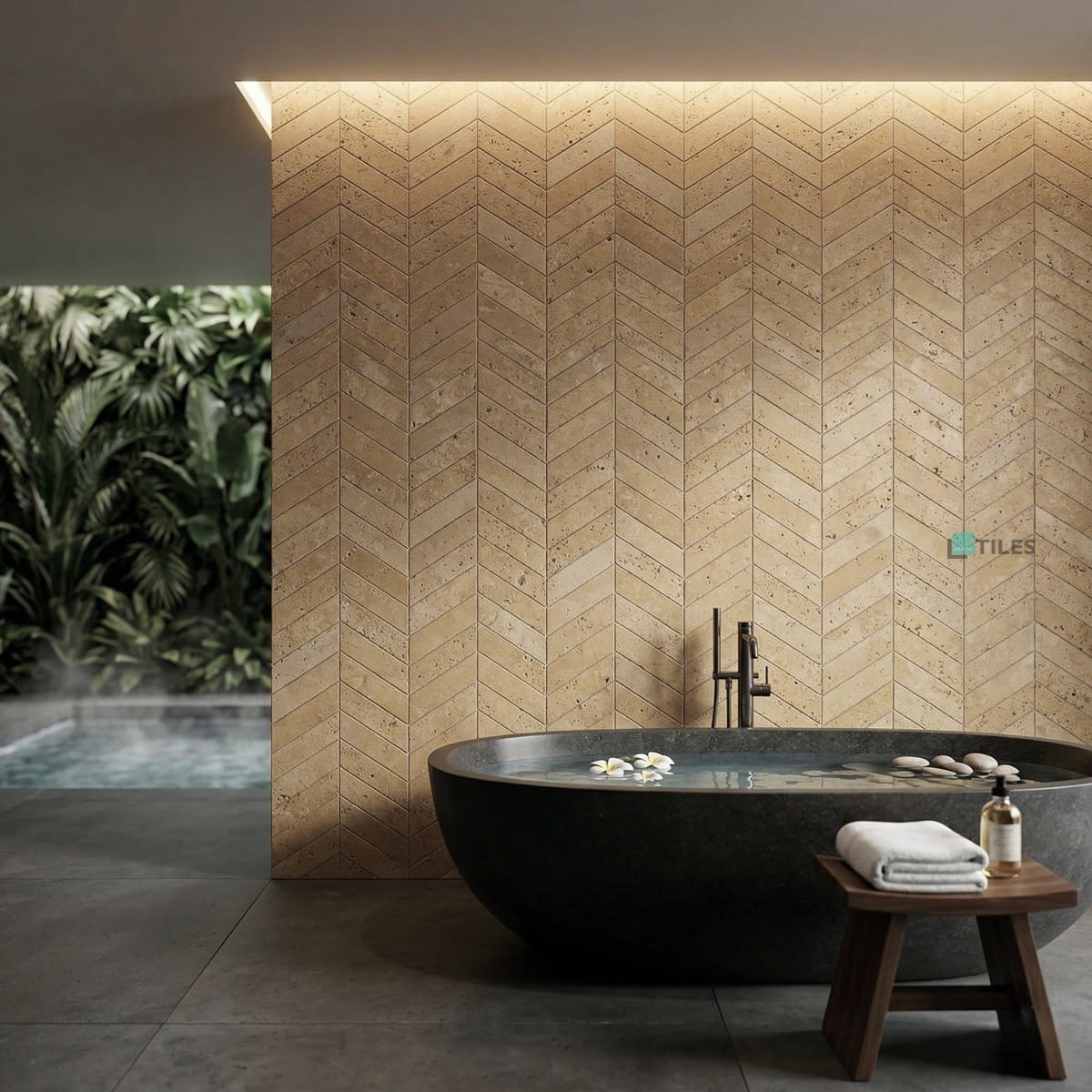 Dlaczego warto wybrać beżowy trawertyn w formacie Chevron?