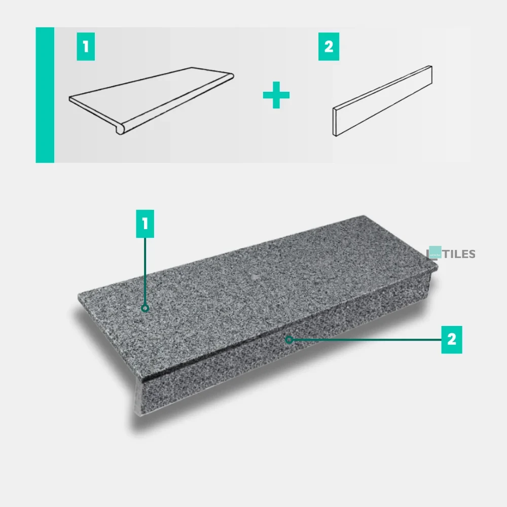 Zestaw Stopnica - Stopień + Podstopień Granitowy Dark Grey New G654 150x33x2 / 150x15x2 StoneTiles