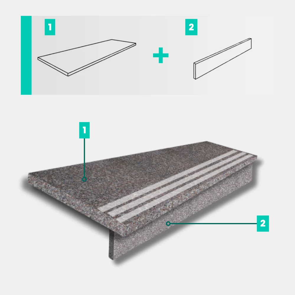 Zestaw Stopnica - Stopień + Podstopień Granitowy G664 100x35x2 / 100x15x2 Polerowany z Antypoślizgiem StoneTiles